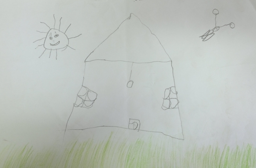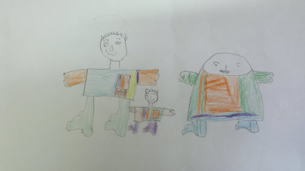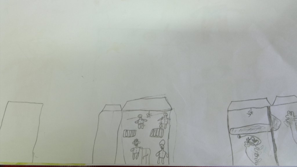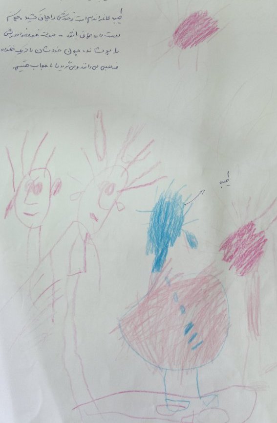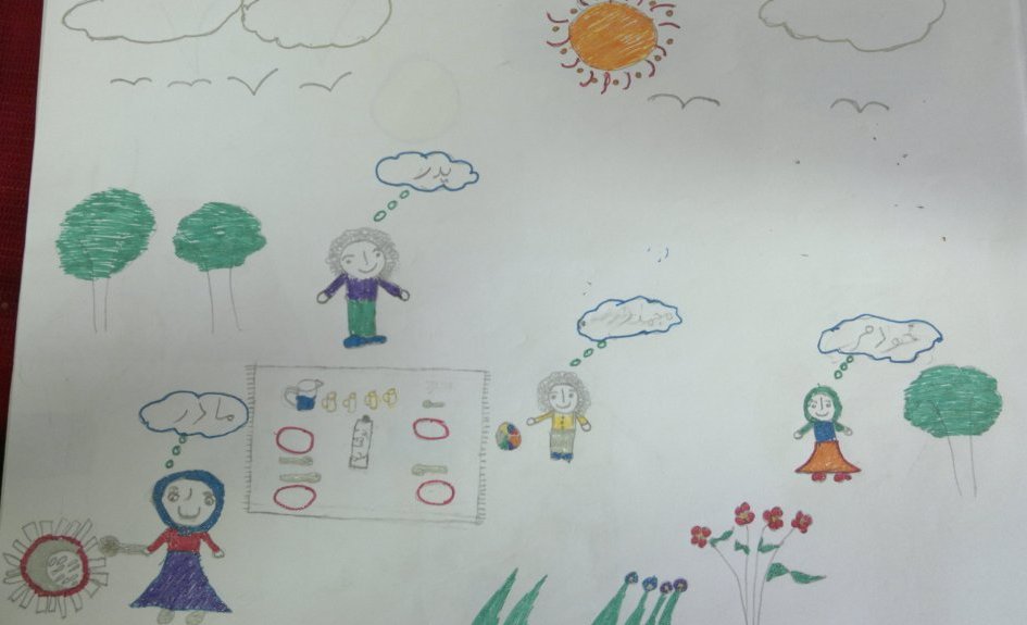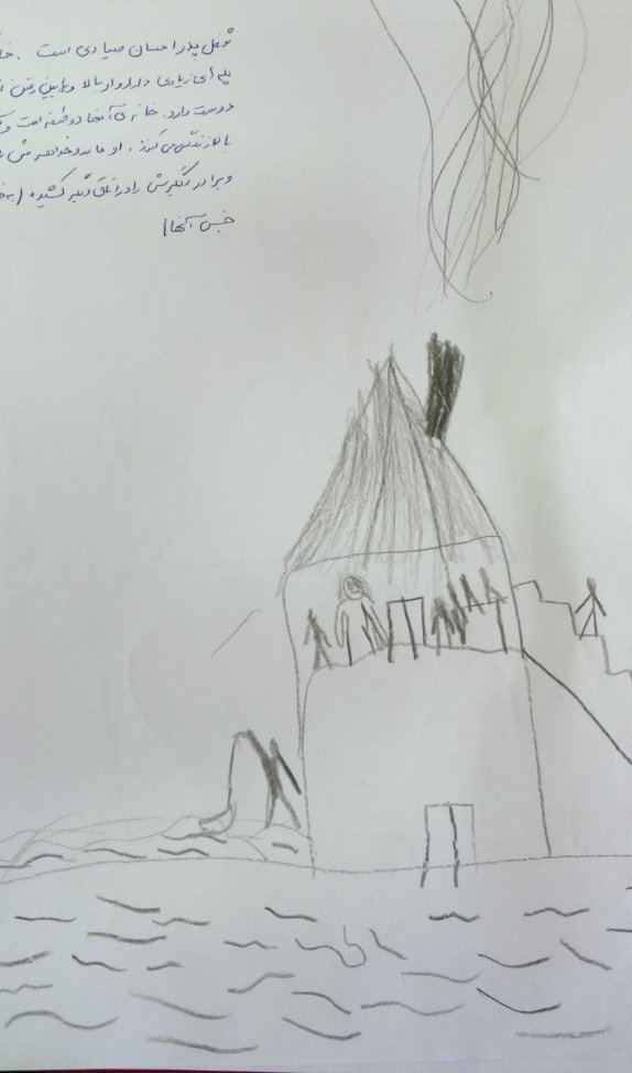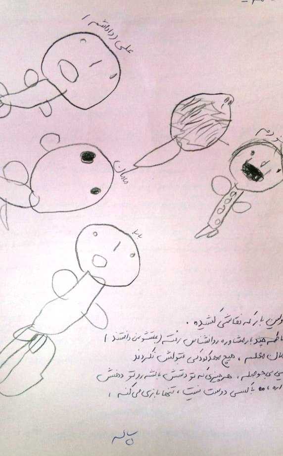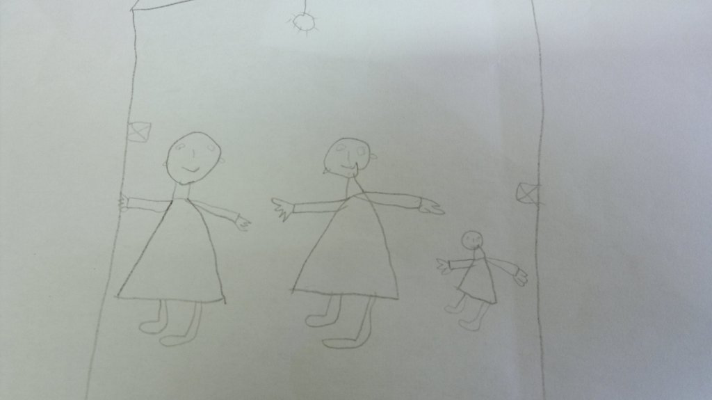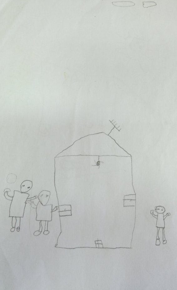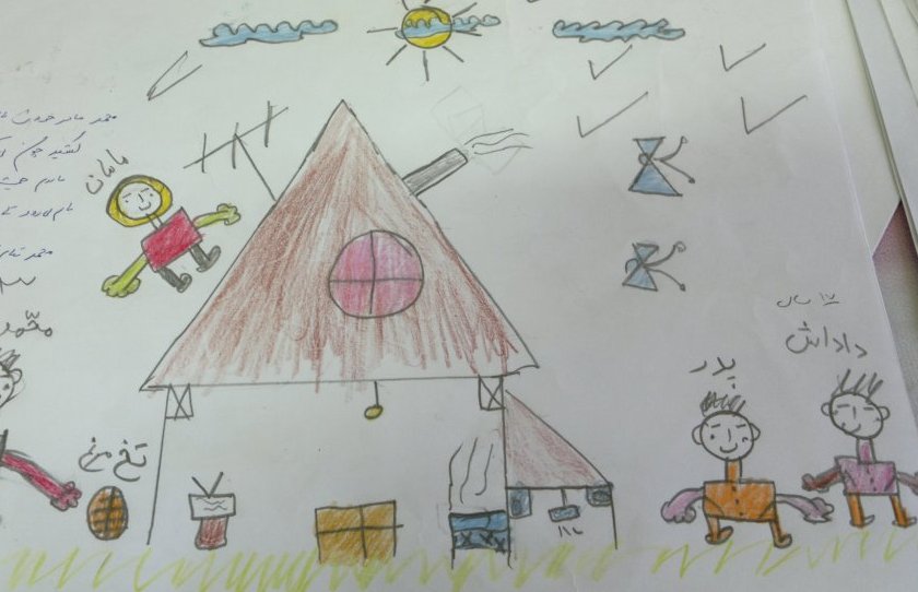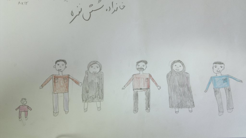 و یا در تصویر دیگری کودک خود و خانواده اش را در خارج از خانه می کشد. اخیرا به دلیل مشکلات مالی خانه شان را فروخته اند.